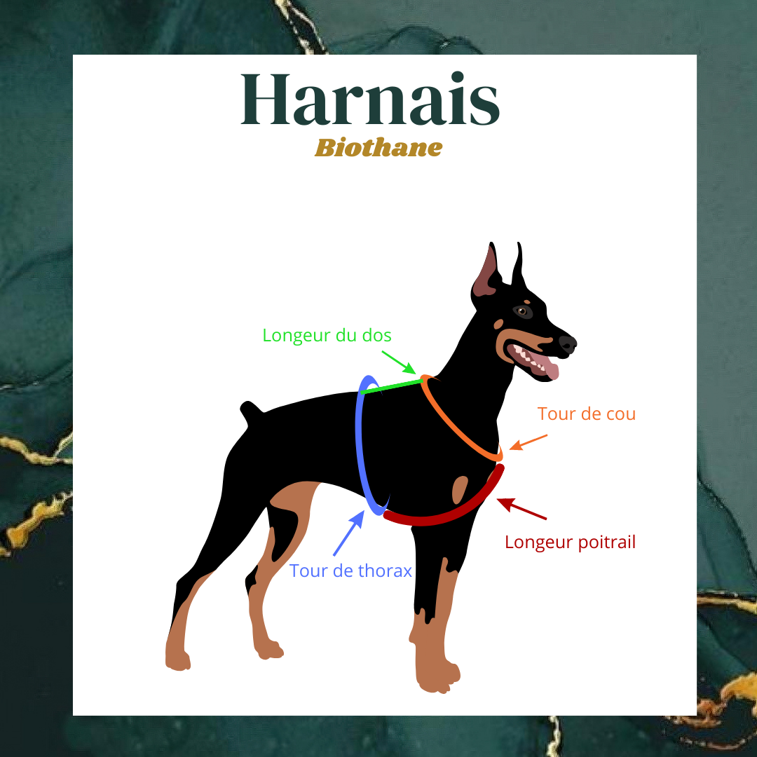 ➡️ Tour de cou : La mesure du tour de cou pour les harnais se situe un peu plus bas vers les épaules, que là où se situe le collier.