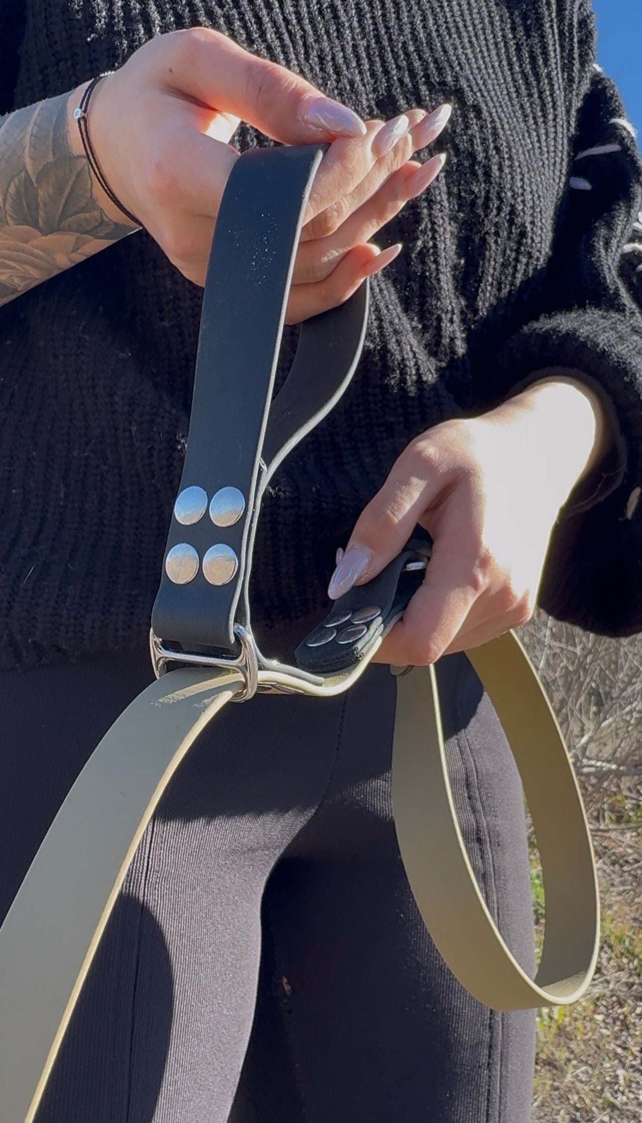 La laisse se transforme en ceinture réglable portée à la taille, conçue pour vous libérer les mains au quotidien.