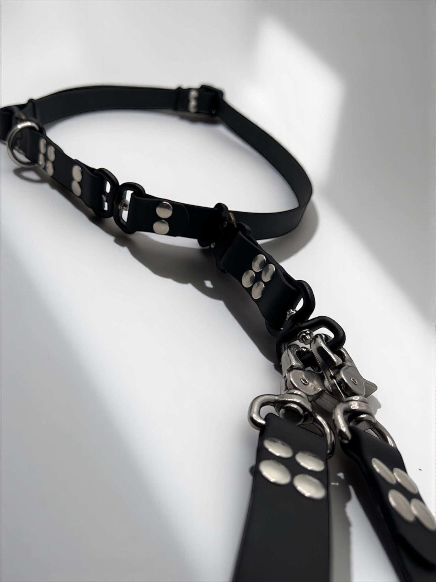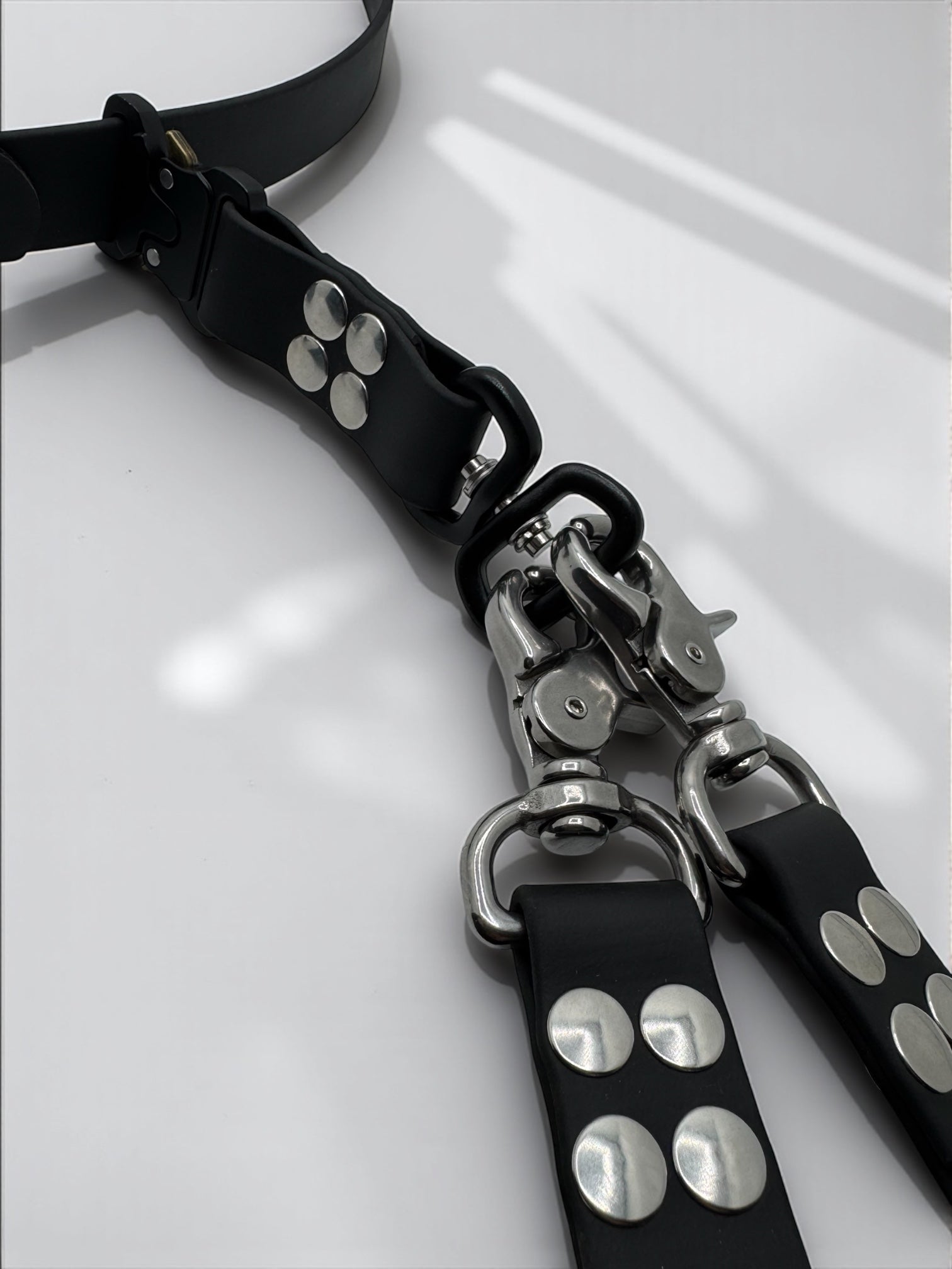 Grâce à son émerillon intégré, les extensions pivotent librement et évitent que les laisses ne s’emmêlent.